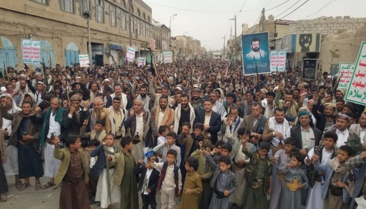 وردد المشاركون في المسيرتين التي خرجت بمدينة معبر، ومربع صنعة، هتافات مؤكدة على الجاهزية القتالية لمواجهة العدو الأمريكي، الصهيوني.. مؤكدين استمرار النفير والتعبئة ورفع الجهوزية استعدادًا لمواجهة أعداء الأمة، مجددّين التفويض لقائد الثورة السيد عبد الملك بدر الدين الحوثي في اتخاذ ما يراه مناسبًا في مواجهة الكيان الصهيوني الذي يرتكب جرائم إبادة جماعية بحق الشعب الفلسطيني.