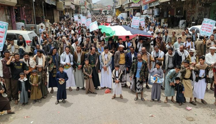 خروج عدداً من المسيرات بمديرية جبل الشرق بذمار تحت شعار “ثبات مع غزة وجهوزية واستنفار في مواجهة العدوان”