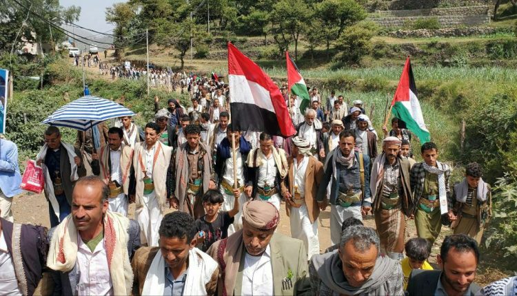 خمس مسيرات حاشدة في مديرية عتمة تأكيدا على الثبات مع غزة والجهوزية في مواجهة العدوان