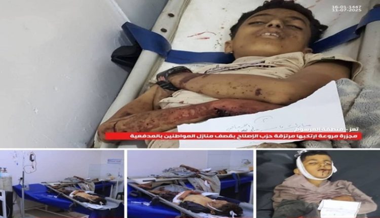 وحملّت السلطة المحلية بمحافظة تعز، مرتزقة حزب الإصلاح المسؤولية الكاملة، قانونياً وإنسانياً، عن هذه الجريمة البشعة، داعية كافة الجهات الحقوقية والإنسانية إلى التحرك العاجل، وإدانة هذه الانتهاكات، وضمان تقديم مرتكبيها إلى العدالة.