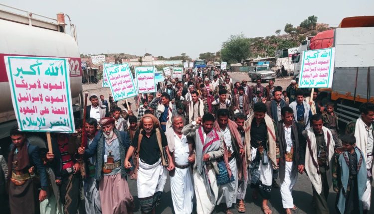 شهدت مديرية المنار بمحافظة ذمار، اليوم، خمس مسيرات جماهيرية تفاعلية تحت شعار:”مستمرون في نصرة غزة ومواجهة الاستباحة الصهيونية للأمة”.