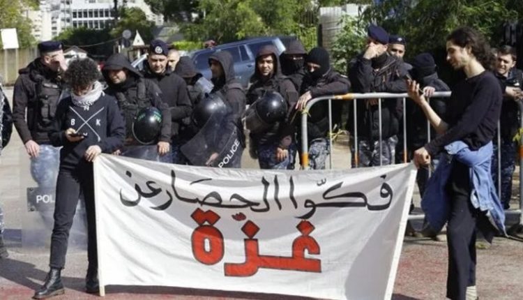 تجمع المئات من الناشطين اللبنانيين والفلسطينيين، أمام السفارة المصرية في العاصمة اللبنانية بيروت، اليوم الأربعاء، للمطالبة بفتح معبر رفح وإدخال المساعدات الإنسانية إلى غزة.