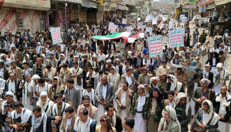 مسيرات مُتعدّدة بمديرية جبل الشرق بذمار تحت شعار ” لن نتهاون أمام إبادة غزة واستباحة الأُمة ومُقدساتها”