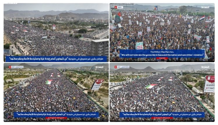 صنعاء تحتضن مليونية “تاريخية” والشعب يؤكّـد أنه لن يترك غزة أو يتهاون مع العدوّ الصهيوني