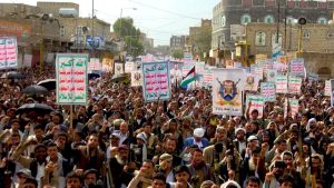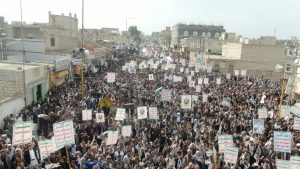 وأشار بيان صادر عن المسيرات، إلى أن أبناء اليمن يواصلون الخروج الجماهيري الأسبوعي نصرةً لفلسطين، وابتغاءً لوجه الله، في ظل الجرائم البشعة التي تُمارس في غزة من قتل وتجويع وتشريد.