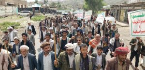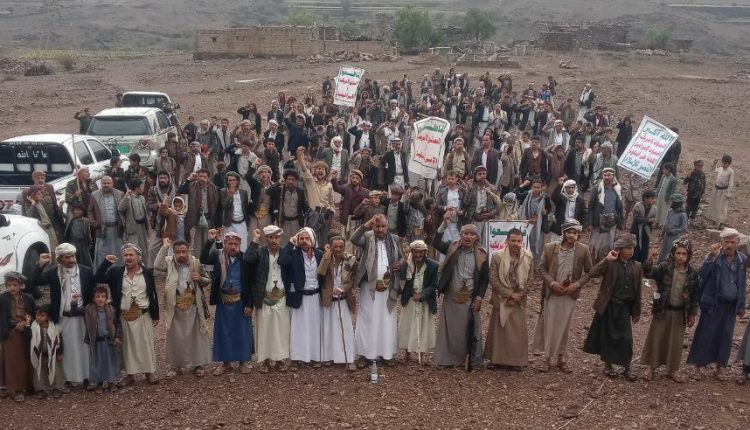 مسيرات مُتعدّدة بمديرية جبل الشرق بذمار تحت شعار “ثباتاً مع غزة وفلسطين ورفضاً لصفقات الخداع والخيانة”
