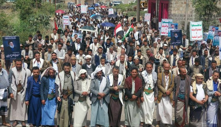 خمس مسيرات حاشدة في مديرية عتمة ثباتا مع غزة ورفضا لصفقات الخداع والخيانة