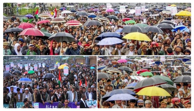 وأكّـد بيان صادر عن مسيرات المحافظة أنه “استشعارًا للمسؤولية الدينية والإنسانية والأخلاقية، يستمر الشعب اليمني في خروجه الأسبوعي في مسيرات مليونية جهادًا في سبيل لله وابتغاءً لرضاه؛ نصرةً لغزة وكل فلسطين في مواجهة الطغاة والمستكبرين، ورفضًا لصفقات الخداع والخيانة”.