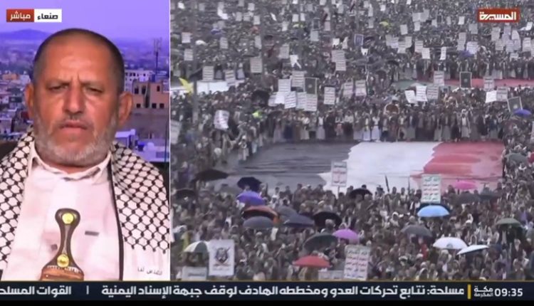 وأوضح في تصريح خاص لقناة “المسيرة” أن خروج اليمنيين في مظاهرات حاشدة في أكثر من 1350 ساحة، رغم الظروف الجوية الصعبة، يعدّ نوعًا من الجهاد في ظل عدم إمكانية الوصول إلى الأراضي المحتلة.
