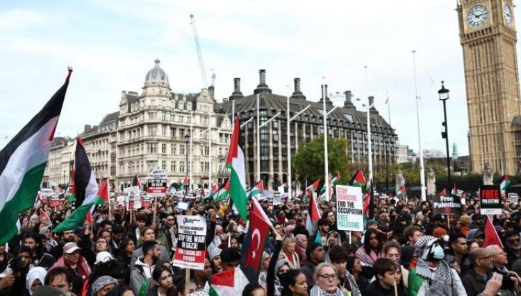 ووفقاً للحملة البريطانية لدعم الشعب الفلسطيني، فقد خرج في العاصمة البريطانية لندن أكثر من نصف مليون شخص في مظاهرة حاشدة، للمطالبة بوقف العدوان الإسرائيلي ورفع الحصار عن قطاع غزة.