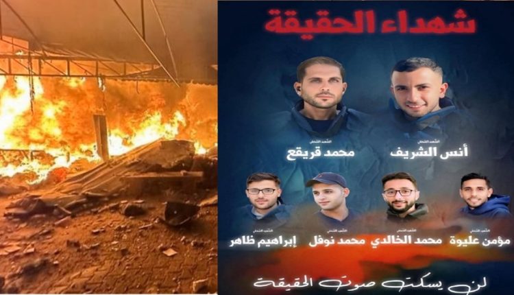 وارتقى شهداء الواجب واعين الحقيقة: “أنس الشريف (مراسل تلفزيوني)، محمد قريقع (مراسل تلفزيوني)، إبراهيم ظاهر (مصور)، مؤمن عليوة (مصور)، محمد نوفل (مساعد مصور)، محمد الخالدي (صحفي)”، وسائق الطاقم.