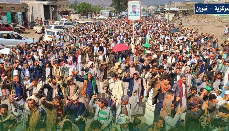 شهدت مديرية ضوران آنس، اليوم، ست مسيرات جماهيرية حاشدة في ست ساحات في مدينة ضوران، وحدقة، وقاع الحقل، ونويد، وعاثين، والوعري، تحت شعار “مع غزة جهاد وثبات لمواجهة أبشع إبادة وأخبث مؤامرات”.