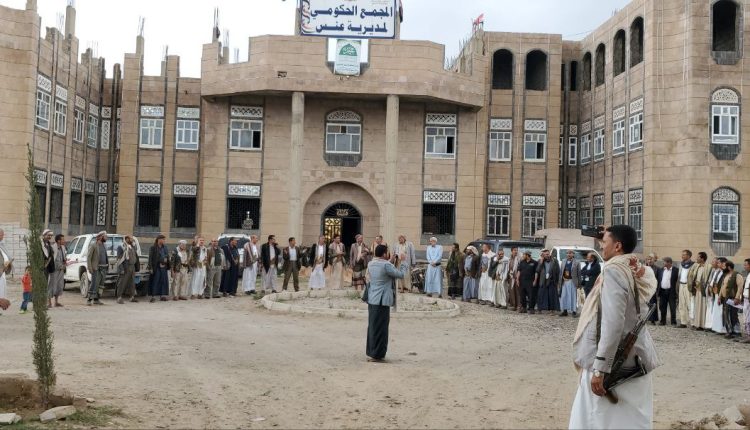 وقفة احتجاجية بمديرية عنس تضامناً مع غزة وتنديد بجرائم العدو الصهيوأمريكي