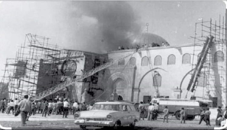 في يوم الخميس الثامن من جمادى الآخرة سنة 1389هـ، الموافق 21 أغسطس 1969م، أحرق العدوّ الصهيوني المسجد الأقصى المبارك، والتهمت النار القسم الجنوبي الشرقي من المسجد، كما أتت على منبره الأثري، وبهذا الاعتداء الصارخ بلغ العدوّ الصهيوني أوج استهانته بمقدسات العرب والمسلمين.
