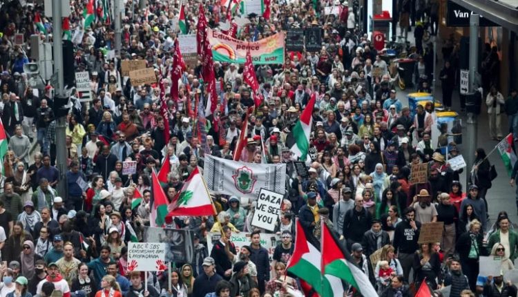 عشرات الآلاف يتظاهرون في أستراليا دعماً لفلسطين ورفضا للإبادة الجماعية