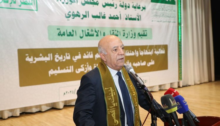 وأكد الرهوي، خلال مشاركته اليوم في الفعالية التي أقامتها وزارة النقل والأشغال العامة ابتهاجاً واحتفاءً بمولد أعظم قائد في تاريخ البشرية، على صاحبه وآله أفضل الصلاة وأزكى التسليم، أن العدوان الصهيوني على بلادنا يطال أهدافاً سابقة، وهو في الواقع يجسد عجز العدو وفشله الاستخباراتي الذريع في اليمن.