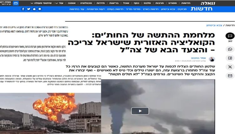 أكّـد موقع “واللا” الصهيوني أن اليمنيين “هم من يحدّدون سقفَ ووتيرةَ عملياتهم طالما استمر العدوان على غزة”، مشدّدًا على وجوب “الدفع نحو بناء تحالف ضد اليمن رغم عدم استعداد دول في المنطقة لتحمّل عبء مواجهة اليمنيين”.