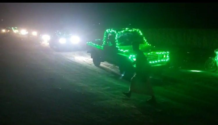 مسيرة ضوئية للسيارات في مديرية ميفعة عنس بذمار احتفاءً بقدوم ذكرى مولد النور.