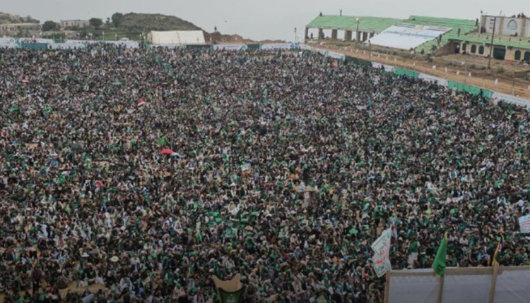 ورددت الجماهير المحتشدة الهتافات المحتفلة بالمولد النبوي الشريف والهتافات المنددة باستمرار جرائم العدو الصهيوني بحق المواطنين في غزة.
