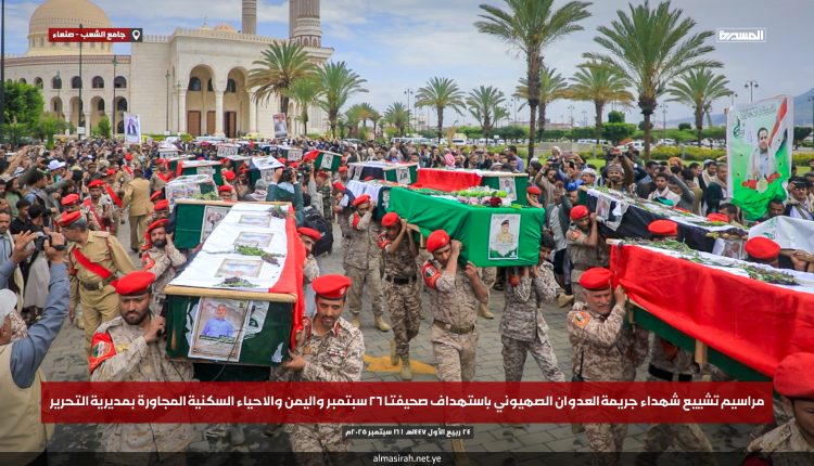 وبحسب مراسل المسيرة، فقد أقيمت صلاة الجنازة على أرواحهم في جامع الشعب بالعاصمة صنعاء، بحضور جماهيري غفير، قبل أن يتم تشييعهم إلى مثواهم الأخير.