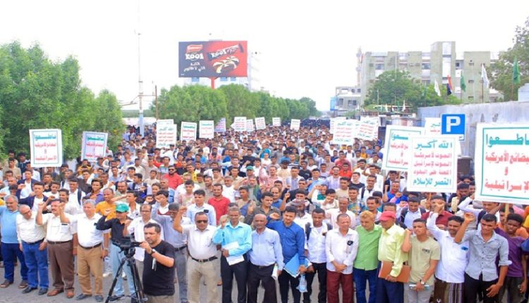 مسيرة حاشدة لطلاب الجامعات والمعاهد المهنية في الحديدة نصرة لغزة وتنديداً بالمؤامرات