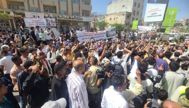توسع الاحتجاجات في مناطق تعز المحتلة تنديداً باغتيال مديرة النظافة