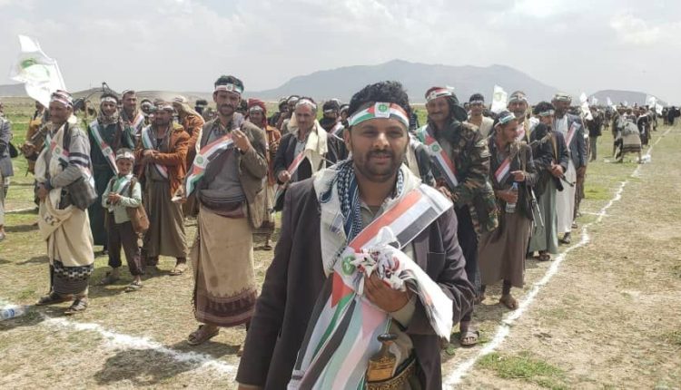 نظمت التعبئة العامة بمديرية ميفعة عنس محافظة ذمار صباح اليوم عرض شعبي تعبوي لخريجي دورات طوفان الأقصى بمناسبة العيد الحادي عشر لثورة الـ 21 من سبتمبر المجيدة تحت شعار «معركة الفتح الموعود والجهاد المقدس»