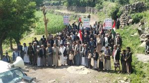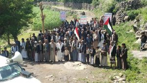 وخلال المسيرات التي شهدتها ساحات مركز المديرية، والثلوث، وجنوبي مخلاف سماه، وشرقي سماه وبيت الحجي والجبري، والمربع الاوسط لمخلاف سماه، وربيعة بني بحر والمقرانة، ومغربة الحيم، والميدان، وجمعة حمير إبزار، وبني بعيث المحصن وبني عبدالصمد بمخلاف السمل رفع المشاركون العلمين اليمني والفلسطيني ورددوا الهتافات وشعارات تعبر عن التضامن مع الشعب الفلسطيني في غزة،وتجديد العهد مع قضايا الأمة.