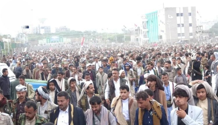 وأكد بيان صادر عن المسيرات الاستمرار في خط الجهاد في سبيل الله والصبر والتضحية بالنفس والمال والالتزام بخط ثورة الـ 21 من سبتمبر المباركة، خط الحرية والاستقلال، وكلها تحتم على الجميع مواجهة الطغاة والمستكبرين والظالمين من الأمريكان والصهاينة والمنافقين والاستمرار في مناصرة المستضعفين من أبناء الأمة.
