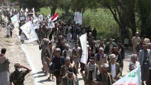 وخلال العرض، رفع المُشاركون العلمين اليمني والفلسطيني.. مُرددين الشعارات المُعبّرة عن الحُرية والعزة والكرامة المُستمدة من ثورة الـ21 من سبتمبر المجيدة التي غيّرت مسار التاريخ اليمني، وأسقطت الوصاية الخارجية، وأعادت للأُمة هويتها الإيمانية الأصيلة.