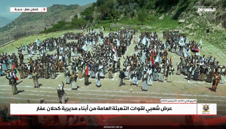 عرضٌ شعبي لقوات التعبئة في كحلان عفار بمناسبة العيد الـ 11 لثورة الـ 21 من سبتمبر