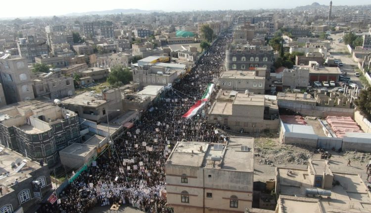 خروج جماهيري كبير بذمار في مسيرة “رفضا للمؤامرة الصهيوأمريكية.. وثباتا مع غزة حتى النصر”