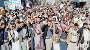 مسيرتان حاشدتان في جهران رفضاً للمؤامرة الأمريكية وتأكيداً على الثبات مع غزة