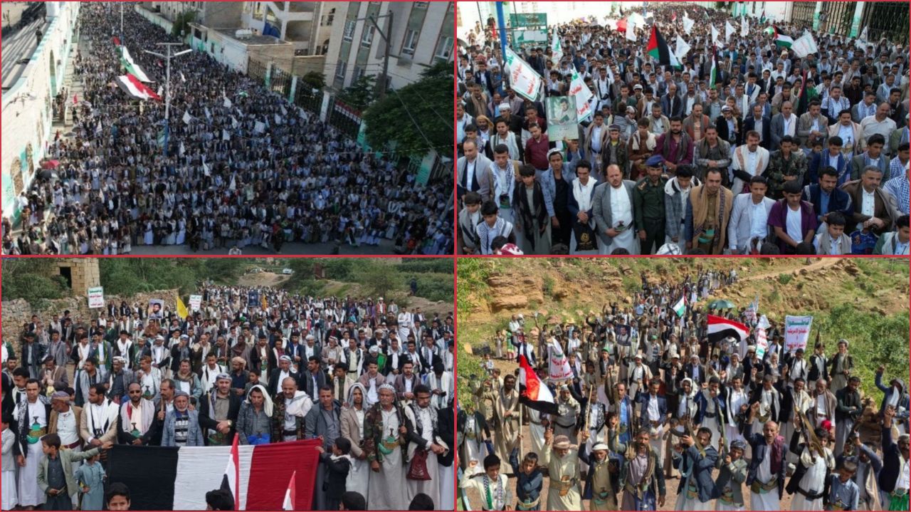 وفي المسيرات التي حملت شعار “رفضاً للمؤامرة الصهيوأمريكية .. وثباتاً مع غزة حتى النصر”، اجتمعت أصوات مئات الآلاف من المواطنين من كل مديريات المحافظة، رافعين شعارات التضامن، والتحدي.