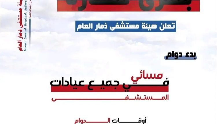 هيئة مستشفى ذمار العام تعلن جهوزية واستعداد جميع العيادات للعمل خلال الفترة المسائية