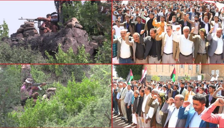 من محافظة ذمار، احتشد المئات من الأكاديميين والإداريين والطلبة في ساحات جامعة ذمار، مردّدين شعارات العزّة والكرامة، ومؤكدين أن نصرة الشعب الفلسطيني التزام إيماني وواجب إنساني يعبّر عن هوية الشعب اليمني ونصرته للحق منذ الأزل.
