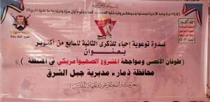 نظمت السلطة المحلية والتعبئة العامة في مديرية جبل الشرق بمحافظة ذمار اليوم، ندوة توعوية بالذكرى الثانية لعملية السابع من أكتوبر “طوفان الأقصى” تحت شعار “طوفان الأقصى ومواجهة المشروع الصهيو أمريكي في المنطقة”.