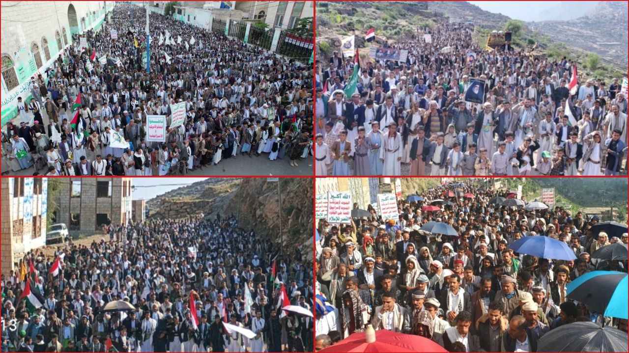 احتضنت محافظة حجة اليوم حشوداً جماهيرية واسعة غفيرة في 335 على امتداد كافة المديريات والعزل، تحت شعارٍ “طوفان الأقصى.. عامان من الجهاد والتضحية حتى النصر”، في تجلٍّ بارز لوحدة الموقف الشعبي والتصميم الراسخ على مواصلة الإسناد والمقاومة حتى تحقيق الهدف.