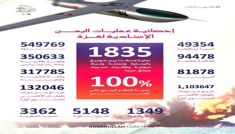كما تعكس الأرقام الدور المحوري لليمن، قيادةً وشعبًا، في إسناد معركة الأمة ضد المشروع الصهيوني الأمريكي، وترسيخ موقع اليمن كعمق استراتيجي للقضية الفلسطينية.