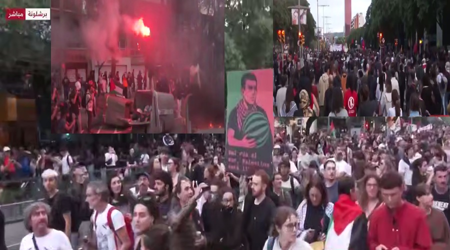 وفي مدينة “برشلونة” بإقليم “كتالونيا”، تواصلت التظاهرات الحاشدة التي تضامنت مع الشعب الفلسطيني ونددت بـ “الجرائم المروعة” التي ترتكبها قوات الاحتلال، وسُجلت بعض المواجهات مع الشرطة الإسبانية وإحراق لحاويات، مع ترديد شعارات مثل “فلسطين حرة” و”الحرية لغزة”.