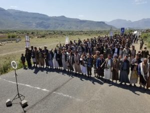 ست مسيرات جماهيرية حاشدة بمديرية ضوران آنس تحت شعار «عامان من العطاء.. ووفاء لدماء الشهداء »