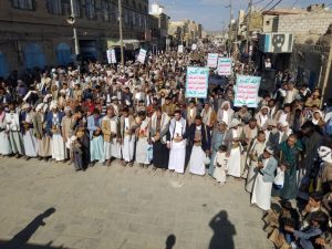 وعبّر بيان صار عن المسيرتين، عن أحر التعازي للشعب اليمني وكافة أحرار العالم في استشهاد القائد الجهادي اللواء الركن محمد عبدالكريم الغماري رئيس هيئة الأركان العامة، الذي كان قائدًا جهاديًا عظيمًا وفارسًا من فرسان الإسلام.
