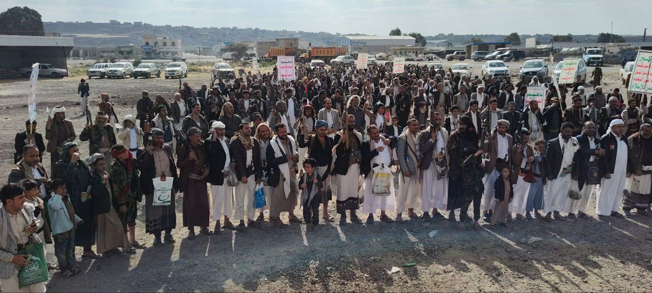 رفع المشاركون شعار الصرخة ..وصور الشهداء ورددوا الشعارات المعبرة عن الصمود اليماني_والمناصرة لأبناء غزة الرافضة لسياسة ترامب وخطته الفاشله الهادفه للأستسلام لا للسلام و للتجويع التي يمارسها العدو الصهيوني في حق أبناء غزة_والمباركةً لعمليات المقاومة الفلسطينية ومجاهديها_وعمليات القوات المسلحة اليمنية في عمق العدو الصهيوني.