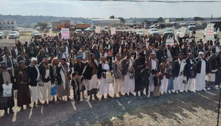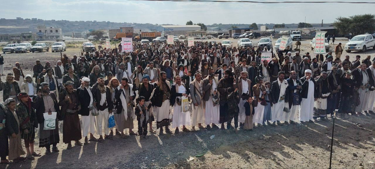 مسيرة جماهيرية في ميفعة عنس بذمار بمرور عامان من الجهاد والتضحيه حتى النصر.