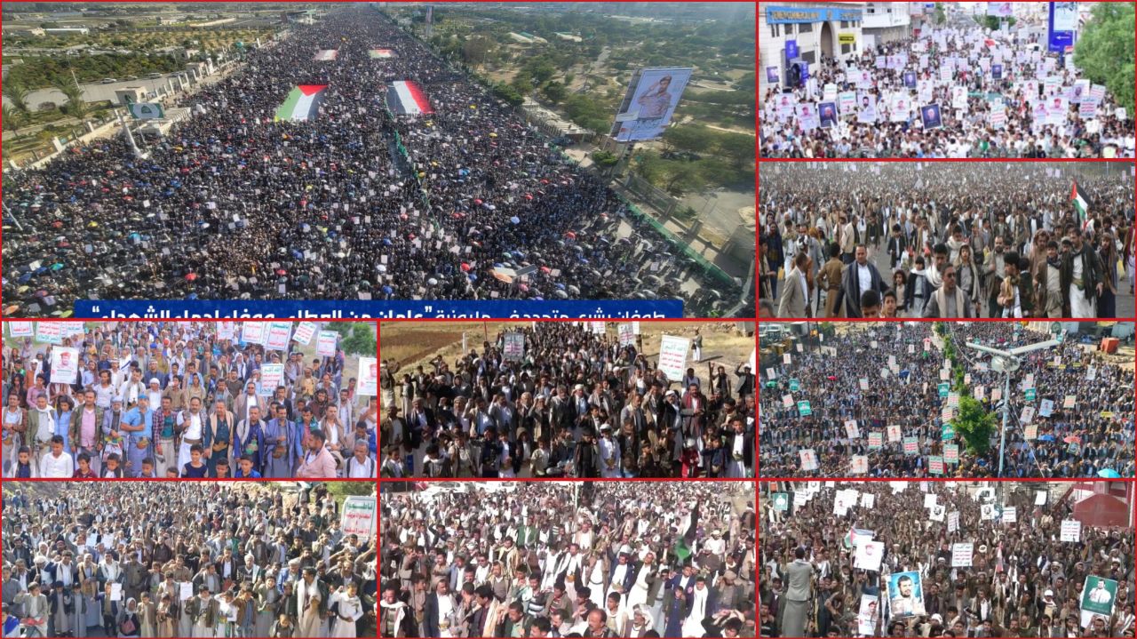 وبعد أن علت الأصوات ووصل صداها إلى كل الأرجاء، جمع اليمانيون كلمتهم في بيان مشترك اختتموا به مسيرات هذه الجولة من الإسناد الشعبي، وجاء فيه: