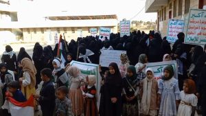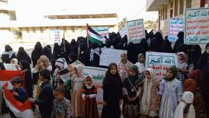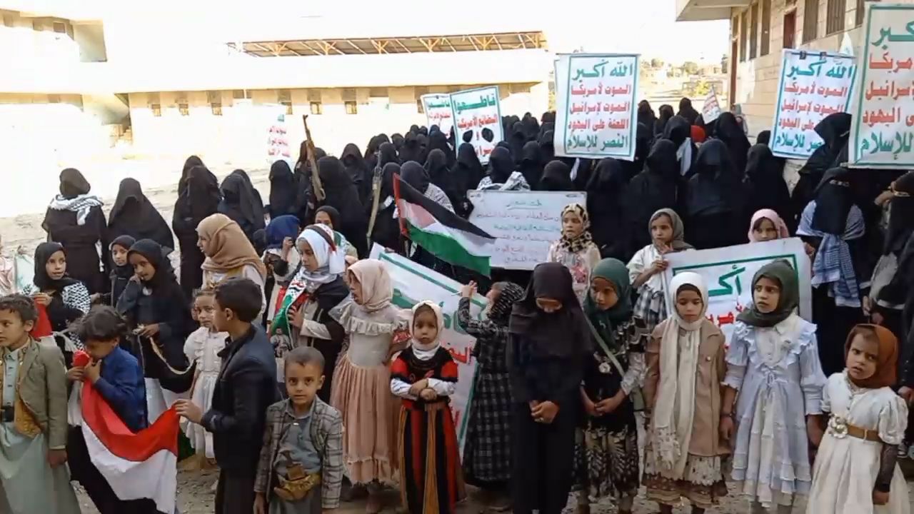 وأكد البيان، وقوف المرأة اليمنية دعماً وإسناداً للشعب الفلسطيني ، وتفويضاً للقيادة الثورية والسياسية في اتهاذ الخيارات المُناسبة لردع العدو الصهيوني الأمريكي والدفاع عن السيادة اليمنية، والإنتصار لحقوق الشعب اليمني.
