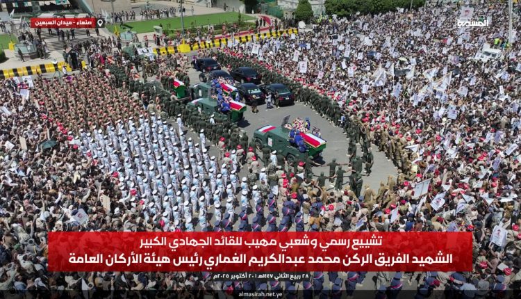 شُيع بالعاصمة صنعاء اليوم في موكب جنائزي رسمي وشعبي مهيب، جثمان الشهيد الفريق الركن محمد عبدالكريم الغماري رئيس هيئة الأركان العامة بوزارة الدفاع الذي استشهد بمعركة “الفتح الموعود والجهاد المقدس”.