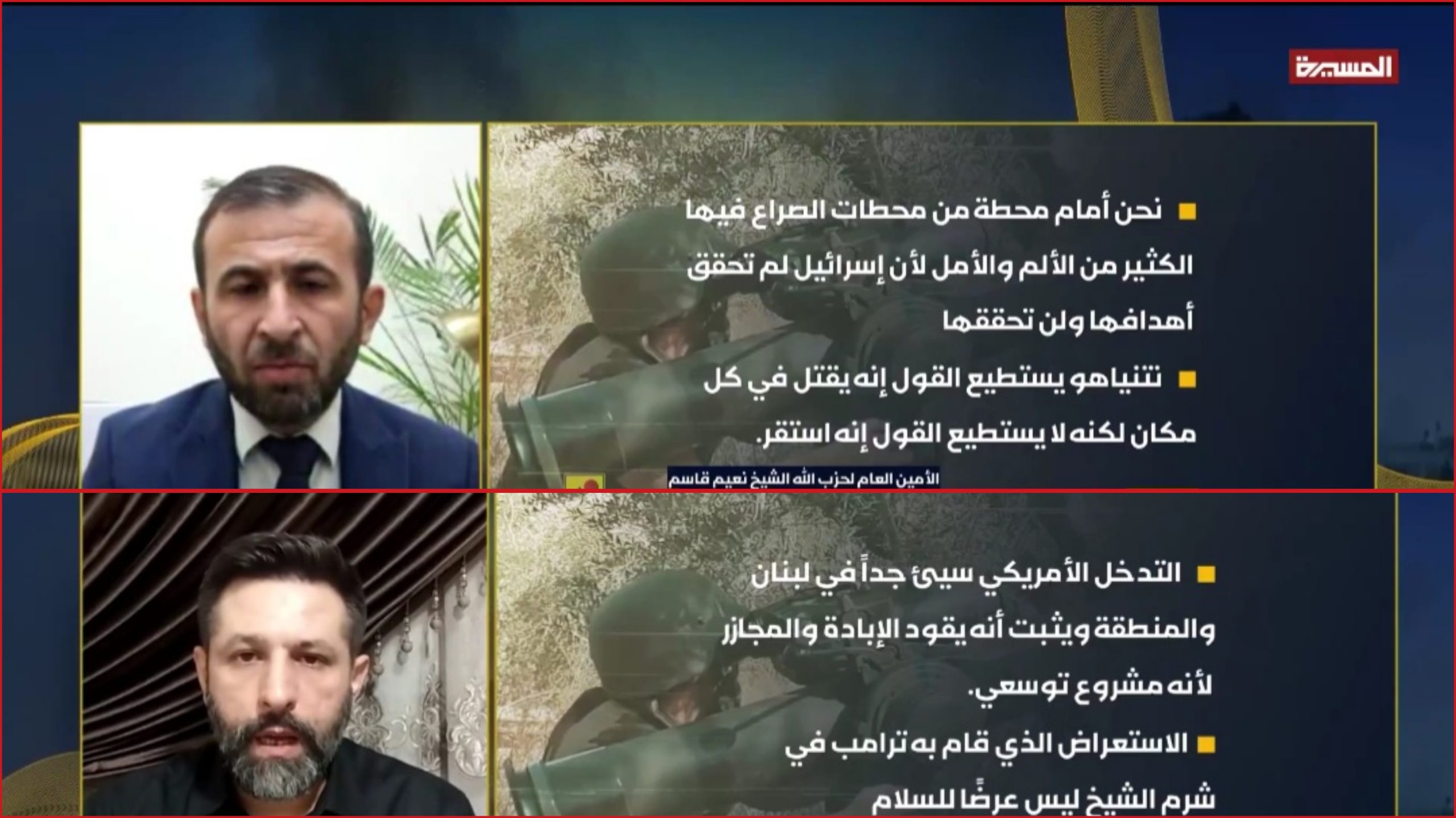 المحلل السياسي اللبناني علي مراد اعتبر أن كل الخطابات التي ألقاها سماحة الشيخ نعيم قاسم في الأشهر الماضية تؤكد استمرار موقف المقاومة الواضح في الدفاع عن السيادة الوطنية.