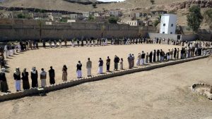 خرج أبناء مديرية الحداء بعد صلاة الجمعة في وقفات قبلية تحت شعار “وفاء لدماء الشهداء.. التعبئة مستمرة والجهوزية عالية “.