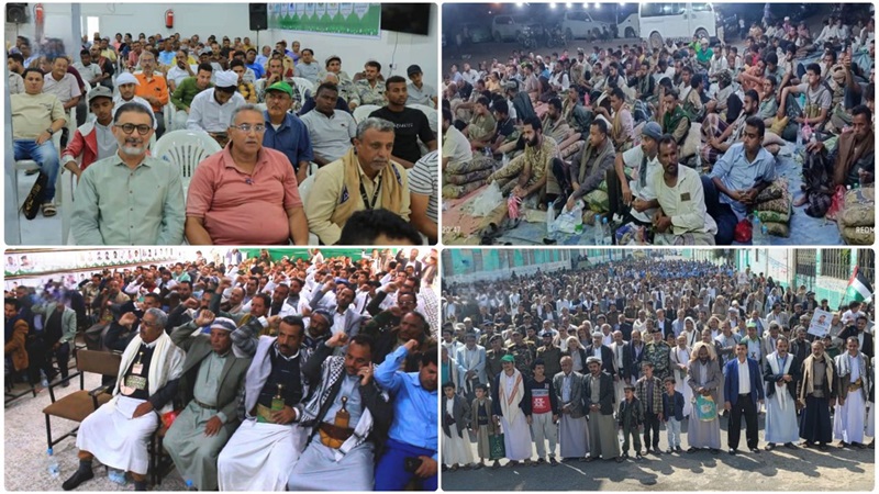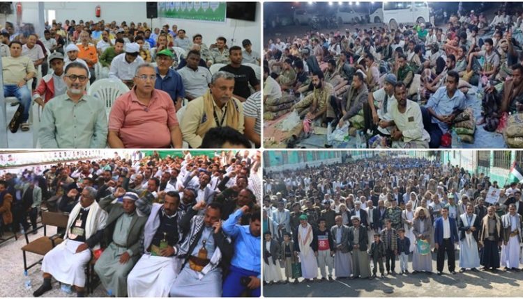 وفي حجةنُظمت بمديريات مركز المحافظة وشرس والجميمة اليوم الأحد، مسيرات تحت شعار “وفاء لدماء الشهداء.. التعبئة مستمرة والجهوزية عالية”.